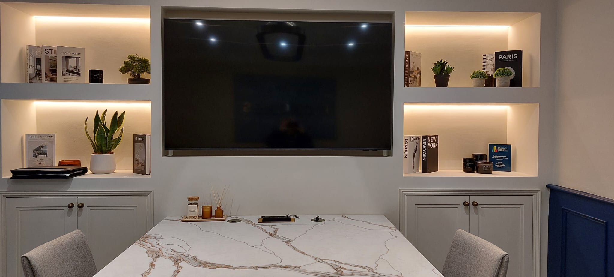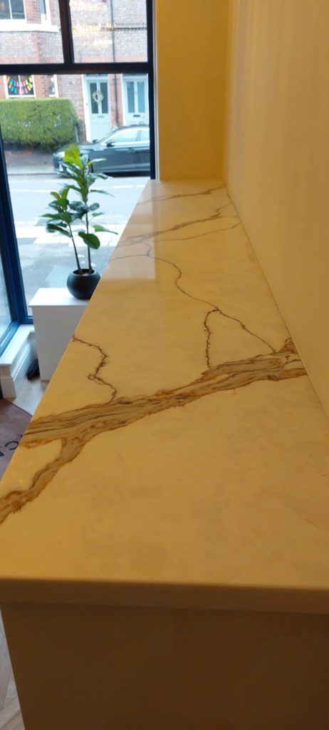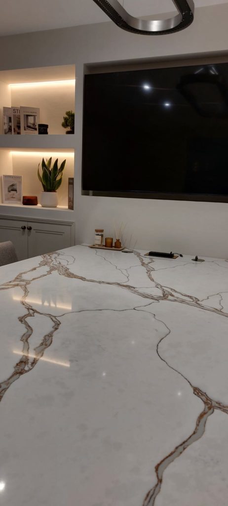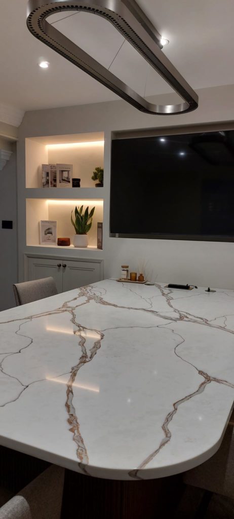 Table in meeting room in BQuartz Calacatta Royale.